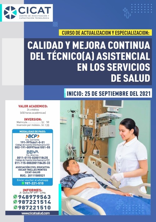 CURSO DE ESPECIALIZACION CALIDAD Y MEJORA CONTINUA DEL TÉCNICO(A) ASISTENCIAL EN LOS SERVICIOS DE SALUD