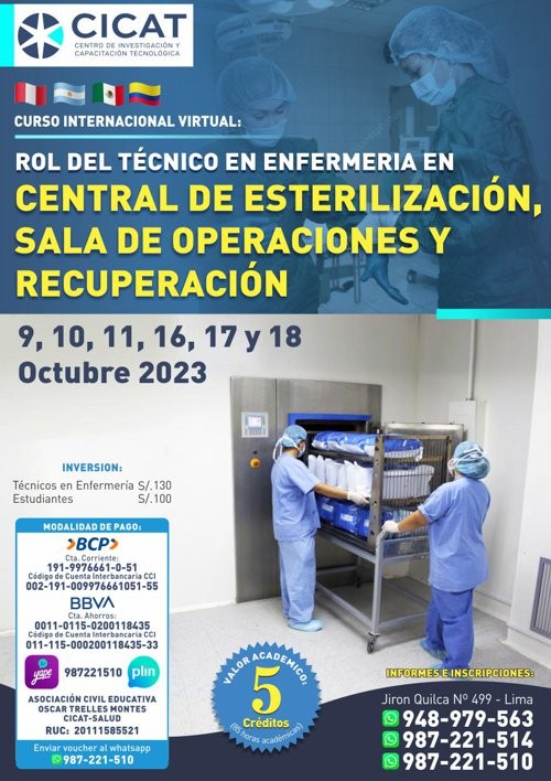 ACTUALIZACION DEL TECNICO EN ENFERMERIA EN CENTRO QUIRURGICO CENTRAL DE ESTERILIZACION Y RECUPERACION POST QUIRURGICA