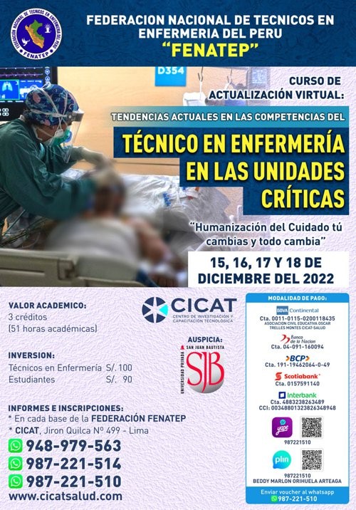 COMPETENCIAS DEL TECNICO EN ENFERMERIA EN LA UNIDAD DE CUIDADOS CRITICOS EN PACIENTES COVID-19 - Nov 20